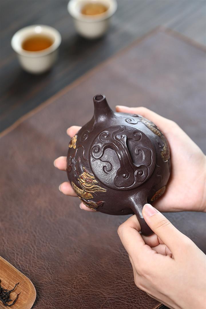 【作品介紹】此款壺形線條流暢,壺把,壺嘴,壺身壹氣呵成栩栩如生,是收藏把玩的好壺,泥料色澤古樸典雅,日久使用,漸露鋒芒,養成變化快,溫潤莊重,用其泡茶,使用的年代久,壺身就溫潤,泡出來的茶湯也就醇郁芳馨。