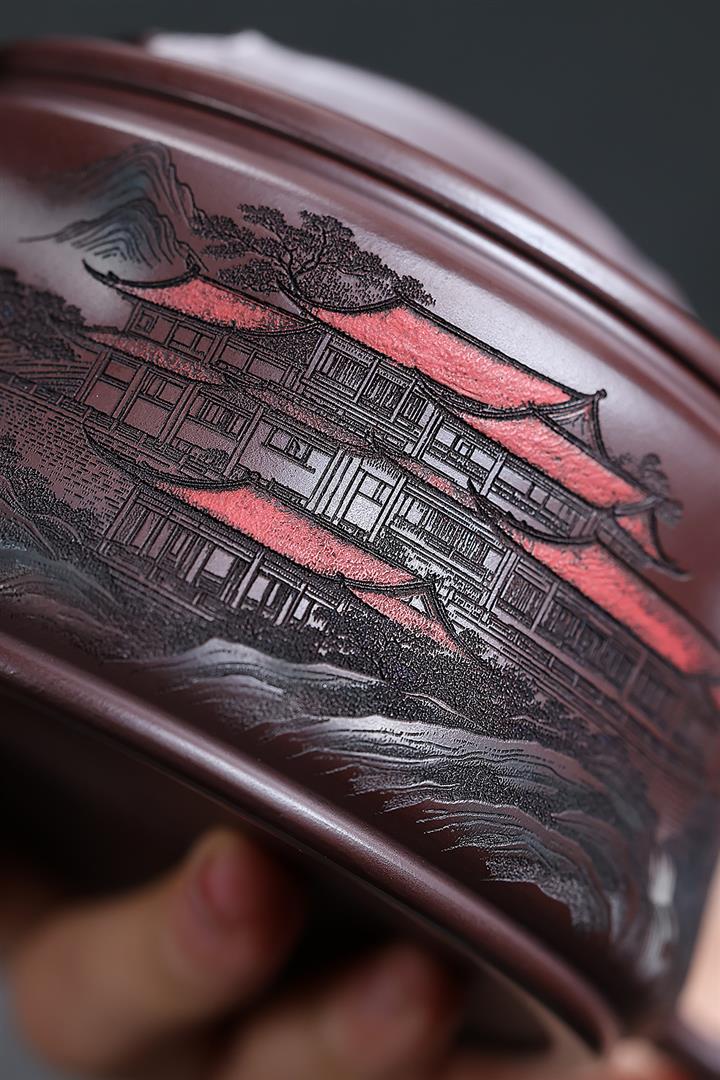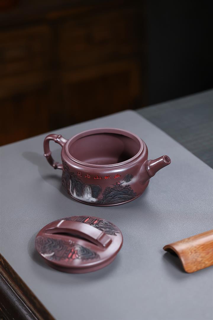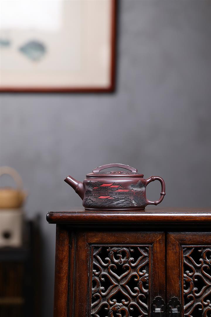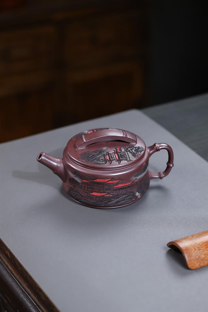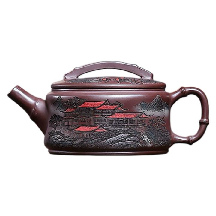 330cc原礦石紅彩繪山水漢瓦泡茶壺POT10187