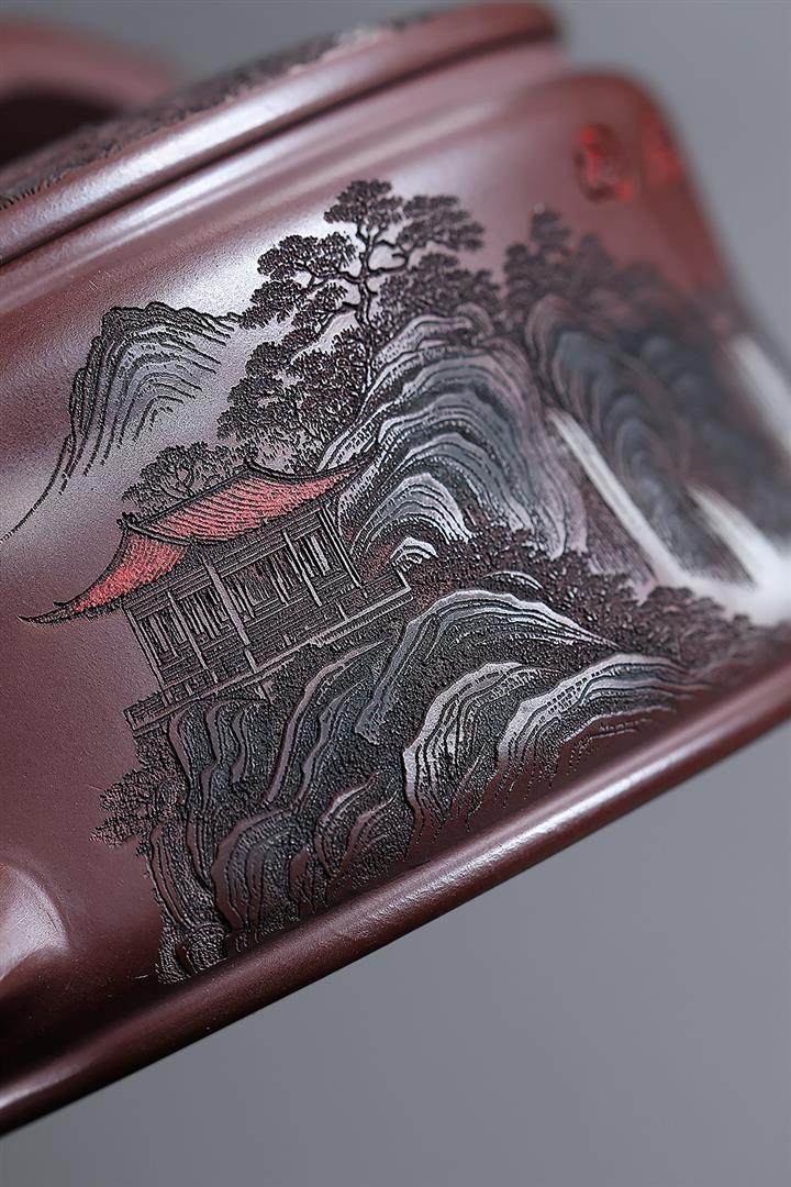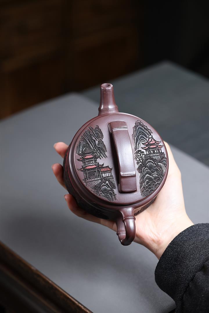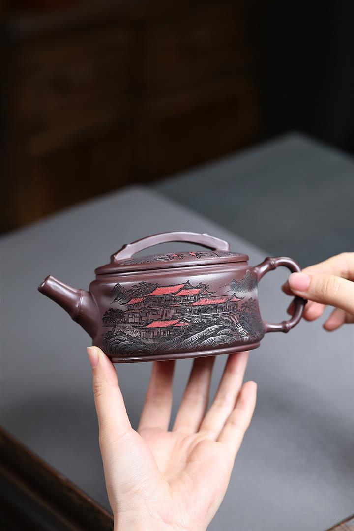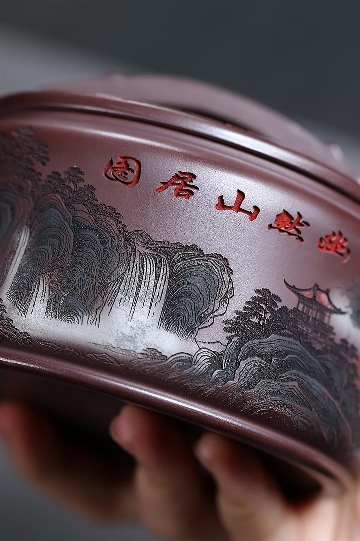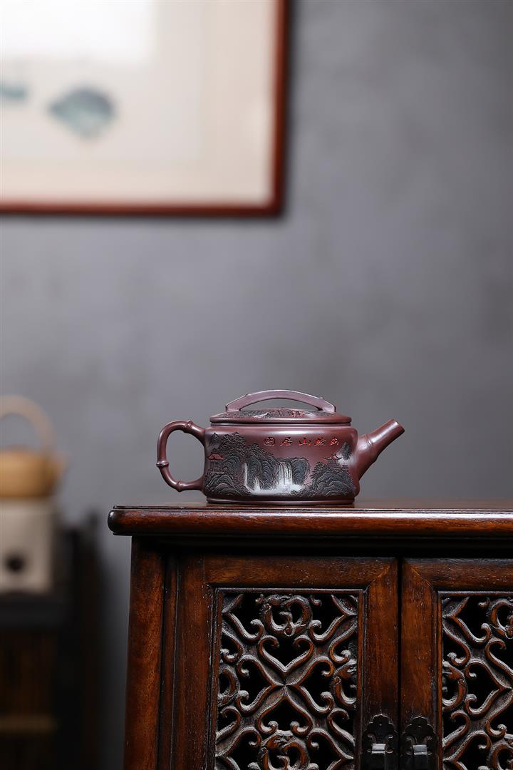 240cc原礦朱泥彩繪山水德鐘泡茶壺POT10192
