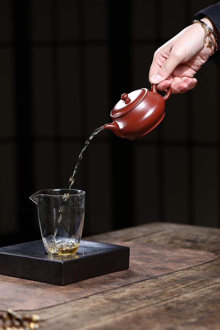【泥料特點】砂土氣重,似淳實農民,日久使用,漸露鋒芒,養成變化,溫潤莊重。紫砂是壹種雙重氣孔結構的多孔性材質,氣孔微細,密度高。用紫砂壺沏茶,不失原味,且香不渙散,得茶之真香真味。紫砂使用越久,壺身色澤越發光亮照人,氣韻溫雅。紫砂壺長久使用器身會因撫摸擦拭,變得越發溫潤光澤。