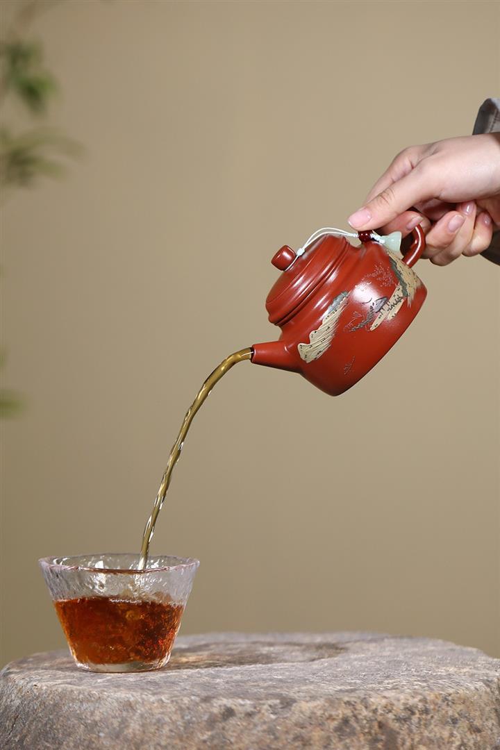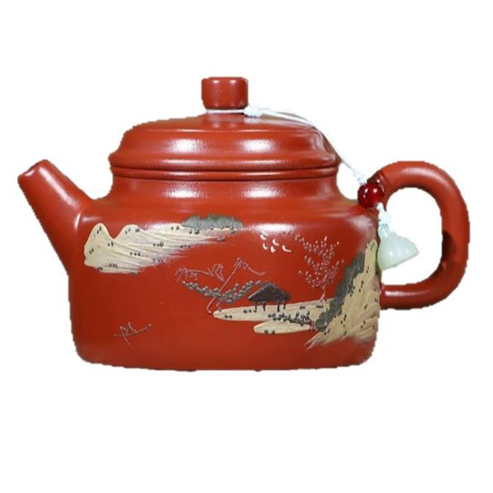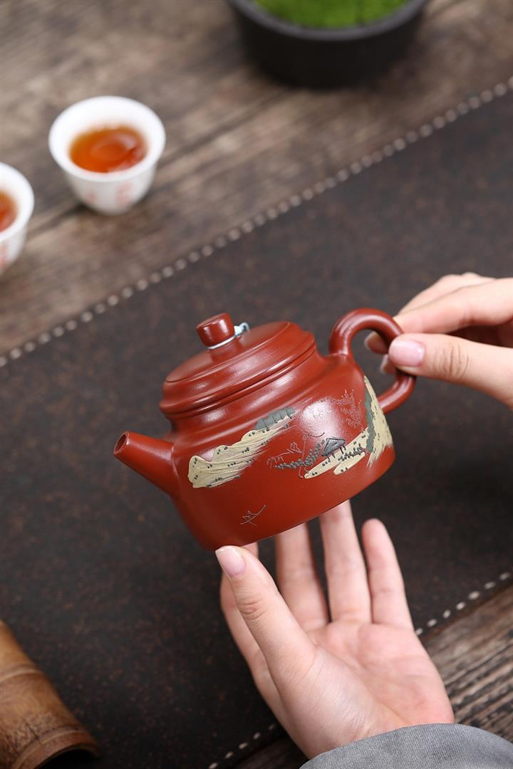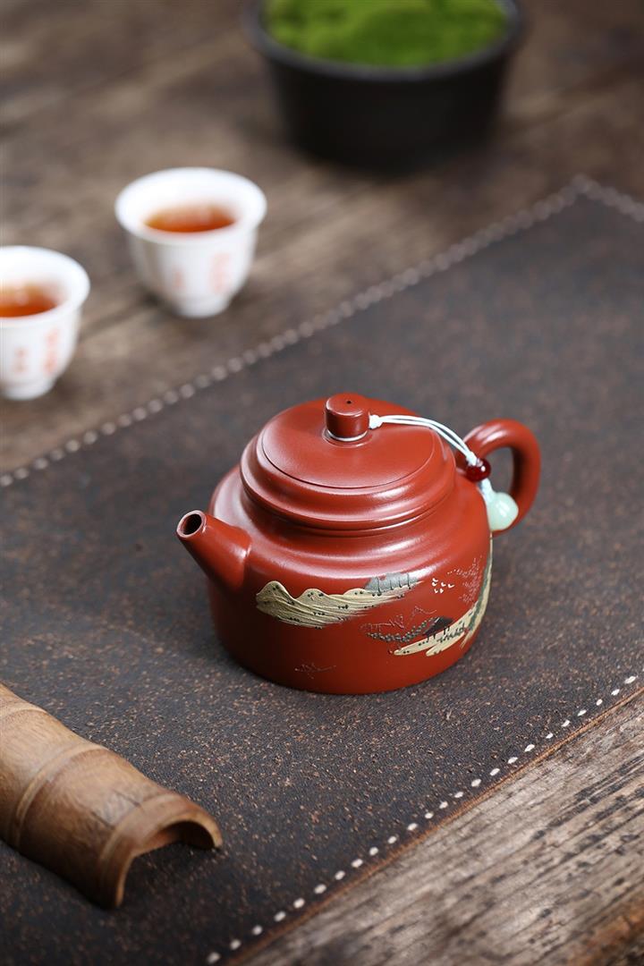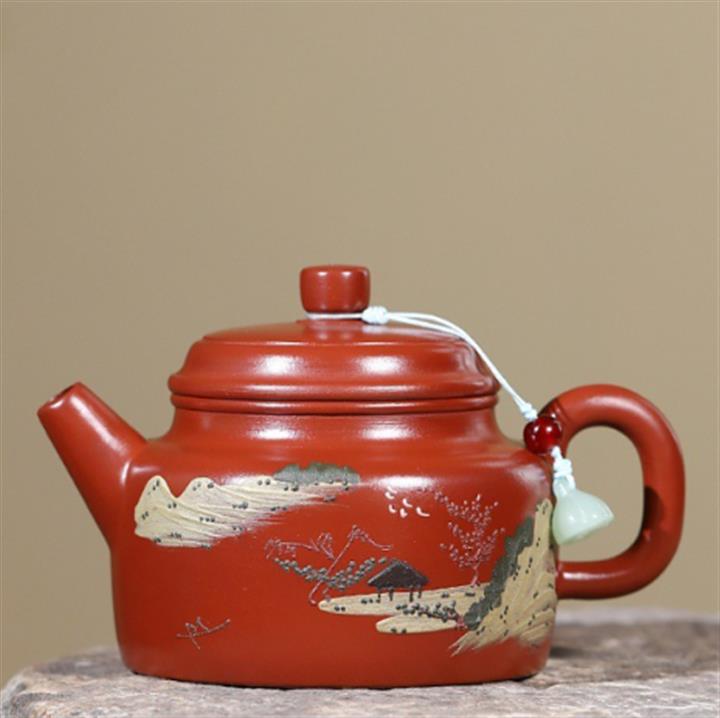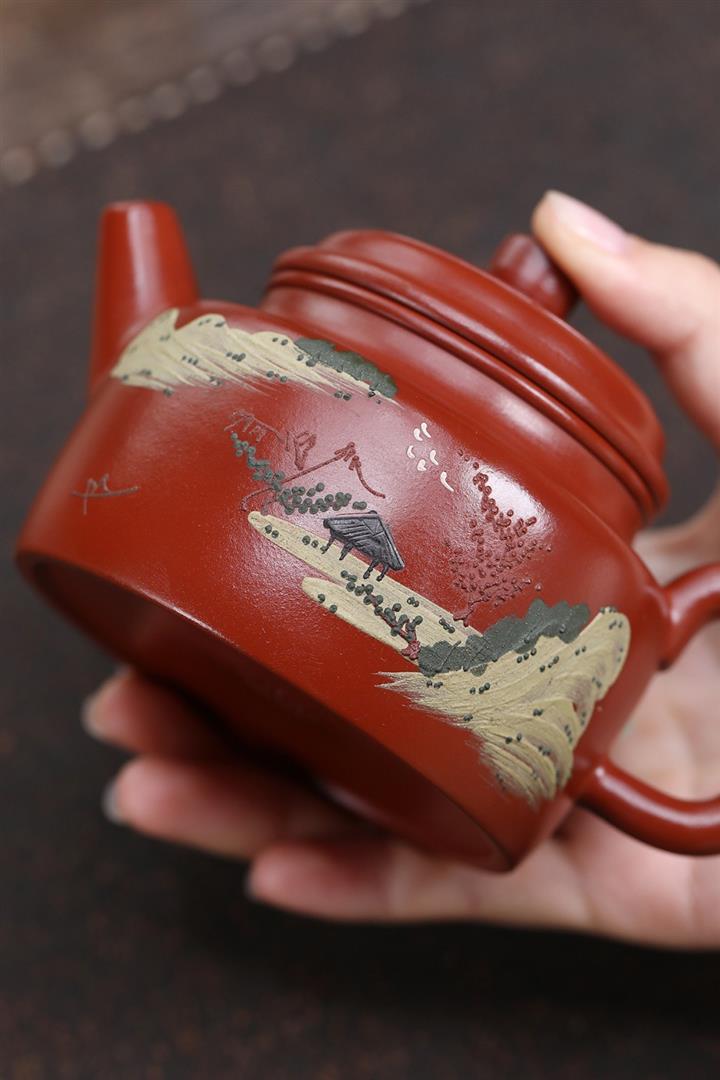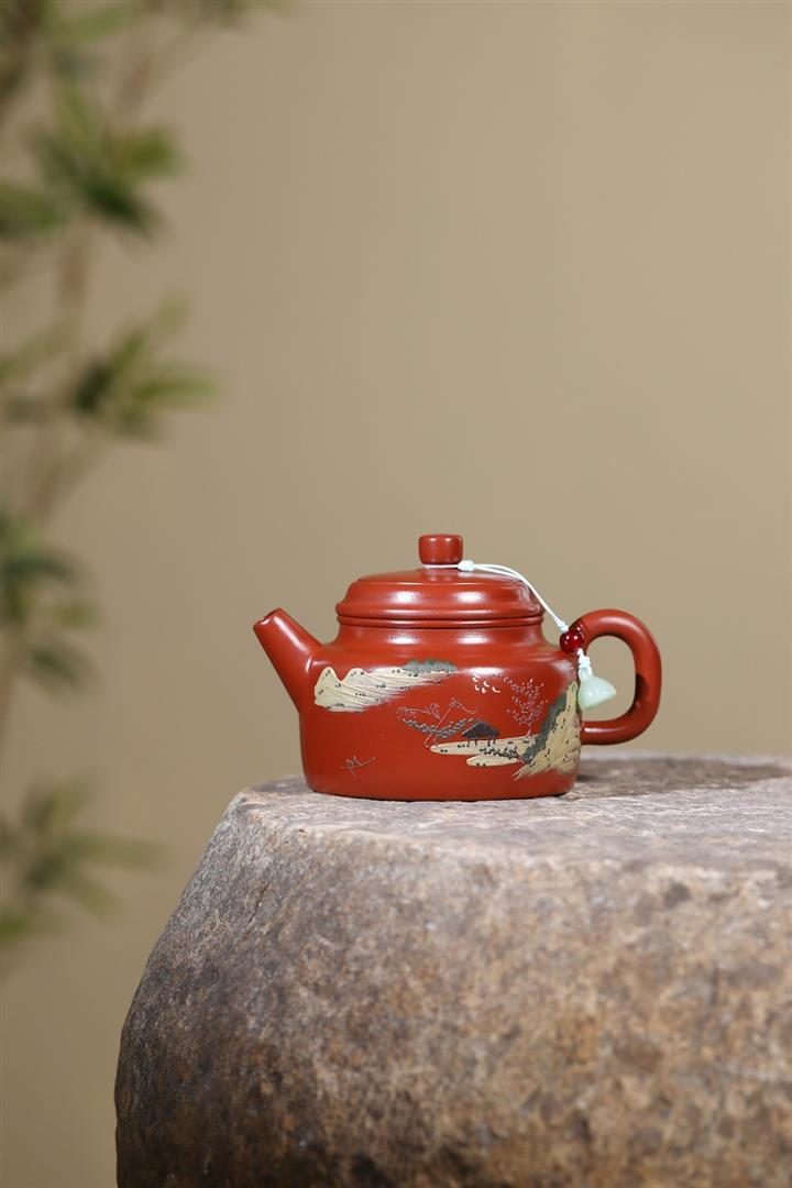 240cc原礦朱泥彩繪山水德鐘泡茶壺POT10192
