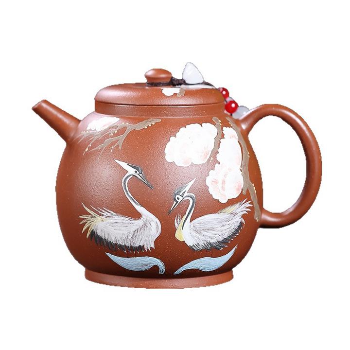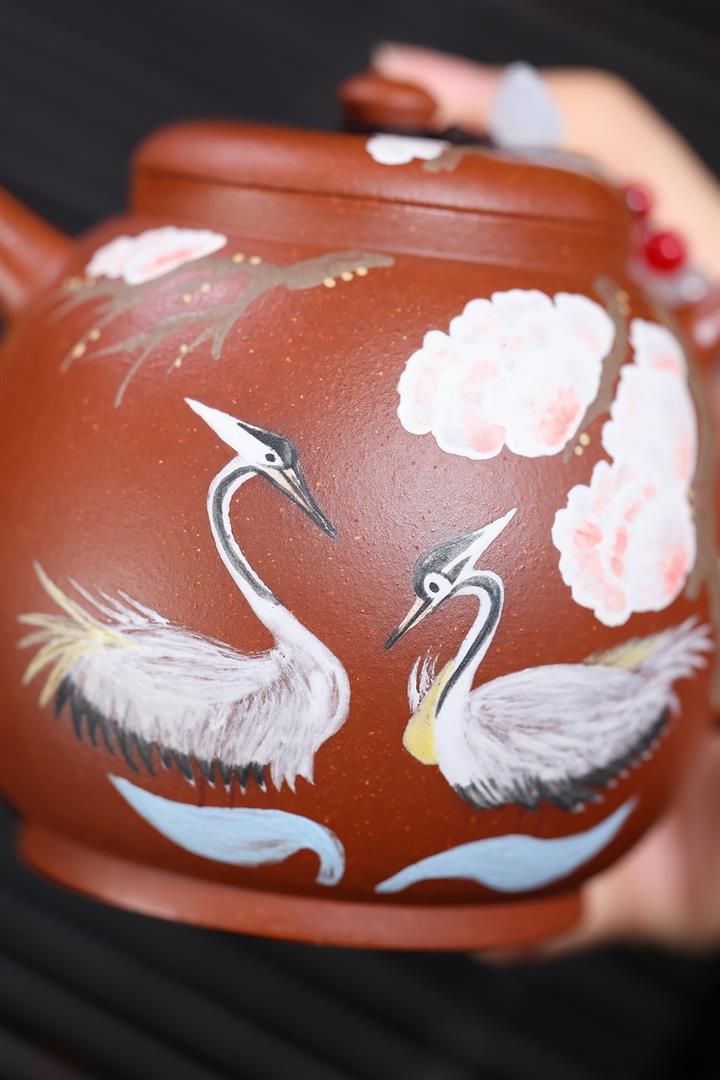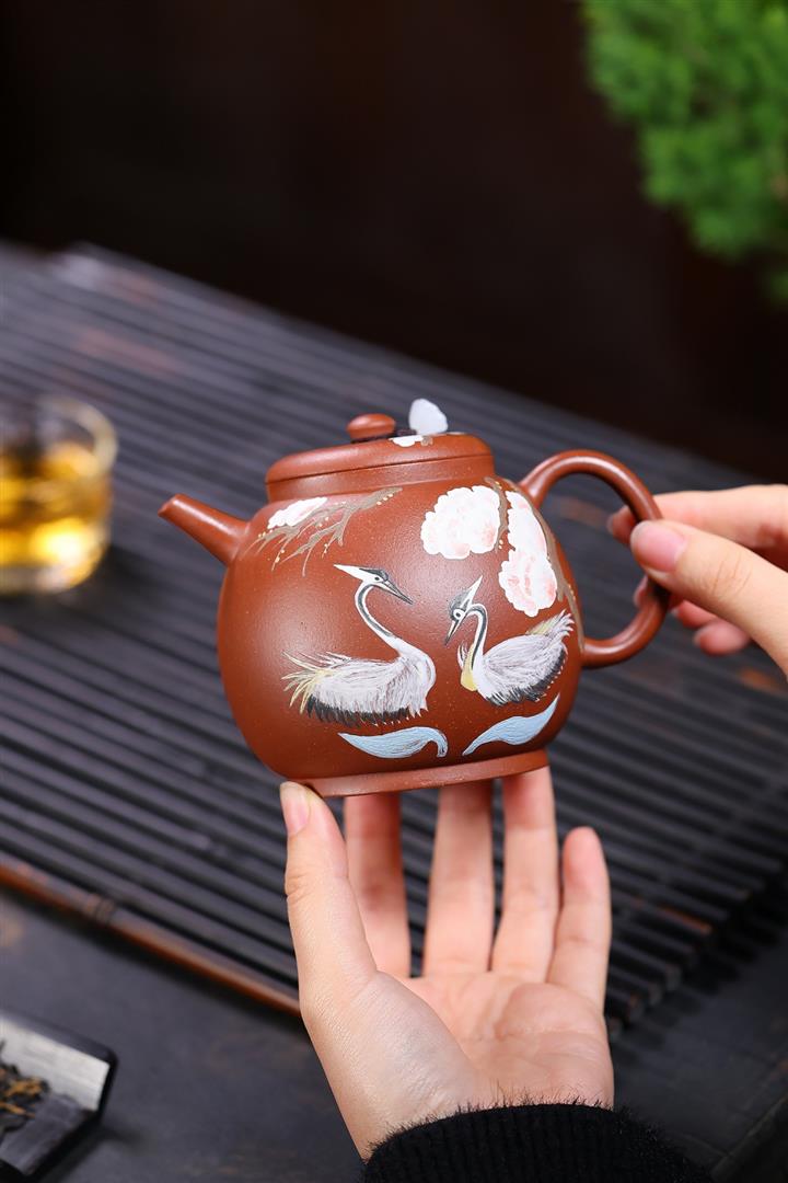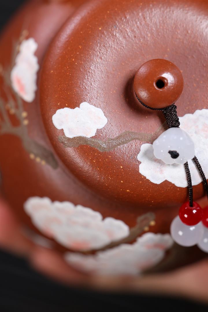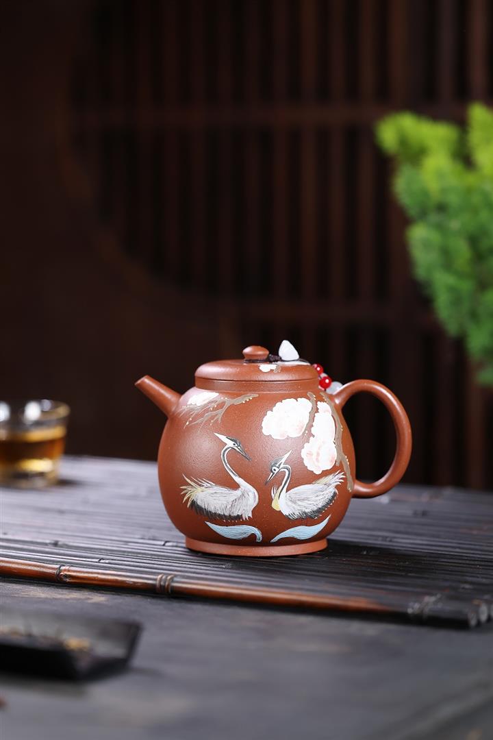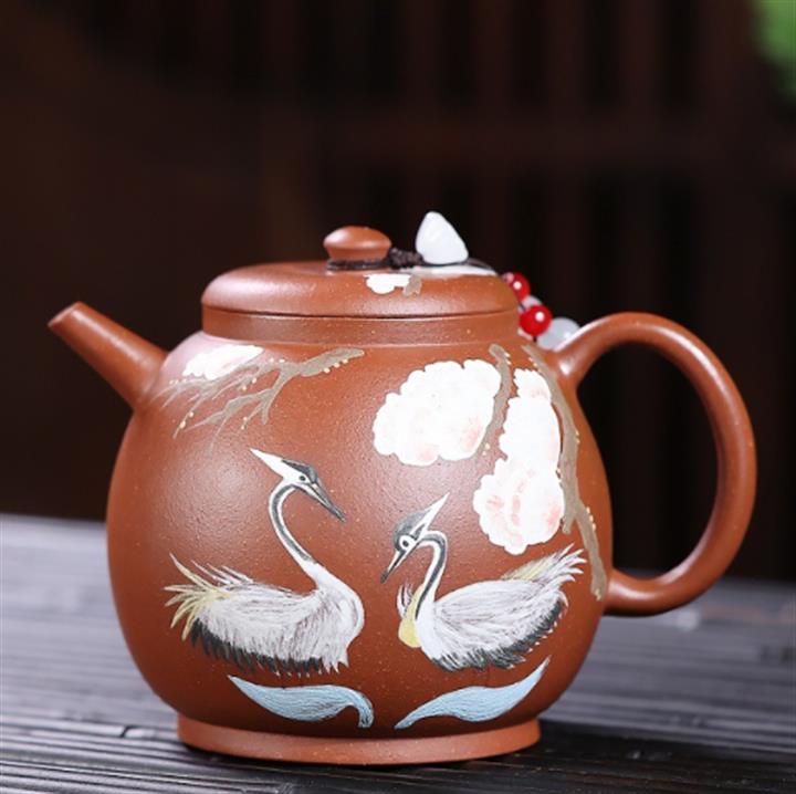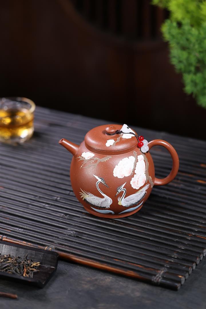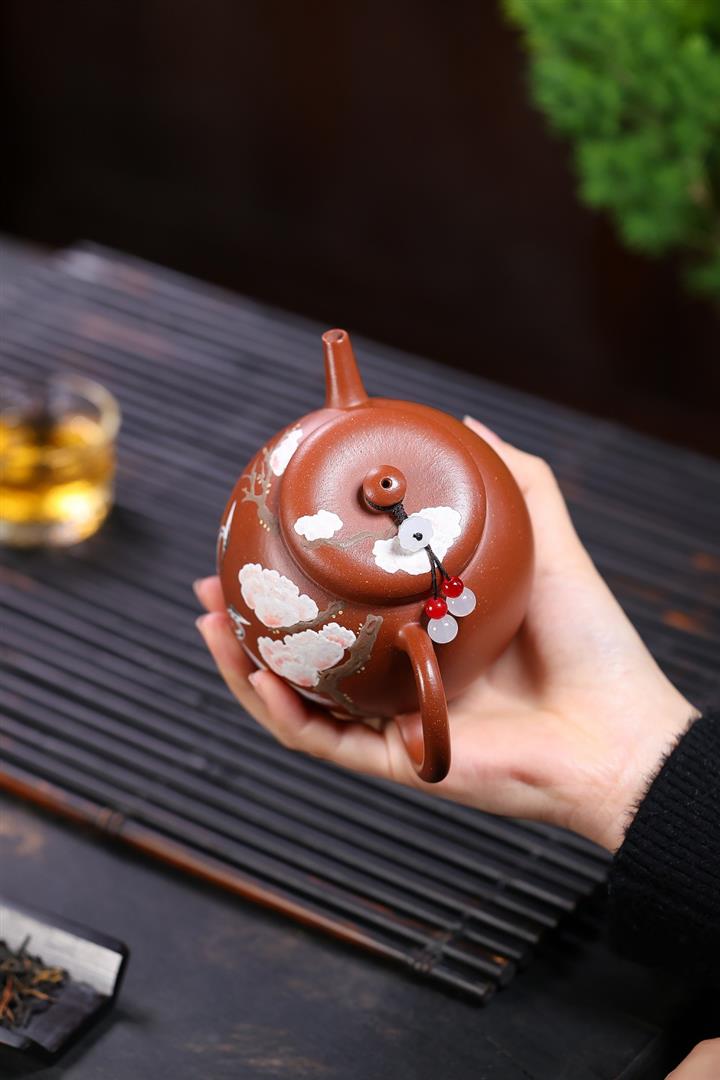 640cc原礦石紅泥彩刻江山寒江泡茶壺POT10203
