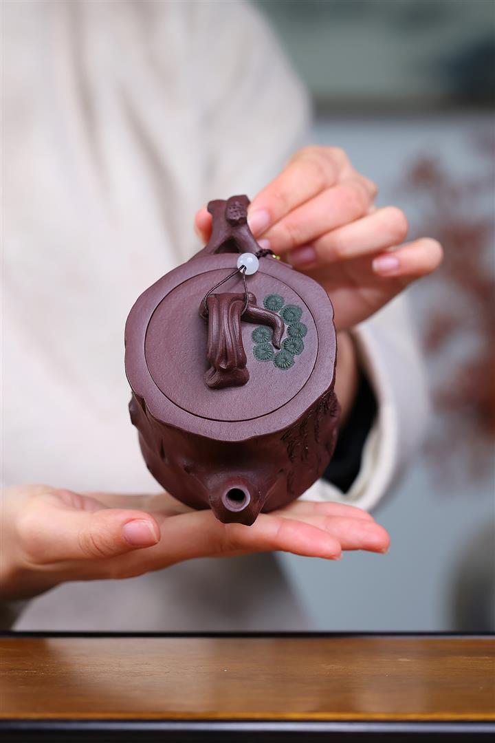 【泥料特點】砂土氣重,似淳實農民,日久使用,漸露鋒芒,養成變化,溫潤莊重。紫砂是壹種雙重氣孔結構的多孔性材質,氣孔微細,密度高。用紫砂壺沏茶,不失原味,且香不渙散,得茶之真香真味。紫砂使用越久,壺身色澤越發光亮照人,氣韻溫雅。紫砂壺長久使用器身會因撫摸擦拭,變得越發溫潤光澤。