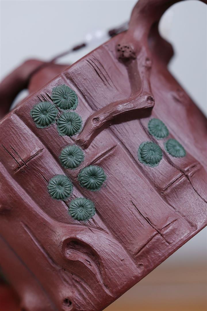 【泥料特點】砂土氣重,似淳實農民,日久使用,漸露鋒芒,養成變化,溫潤莊重。紫砂是壹種雙重氣孔結構的多孔性材質,氣孔微細,密度高。用紫砂壺沏茶,不失原味,且香不渙散,得茶之真香真味。紫砂使用越久,壺身色澤越發光亮照人,氣韻溫雅。紫砂壺長久使用器身會因撫摸擦拭,變得越發溫潤光澤。