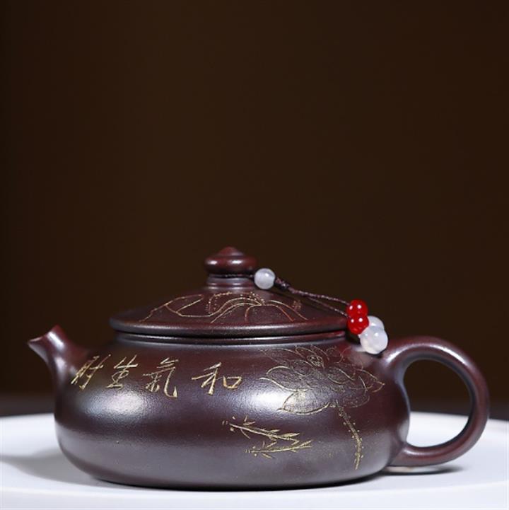 310cc原礦紫泥純手工刻繪山水景舟石瓢泡茶壺POT10216