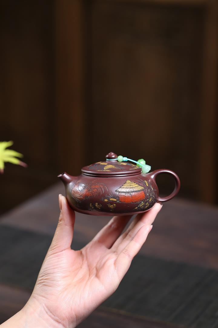 180cc原礦龍血砂彩殼寒江泡茶壺POT10218