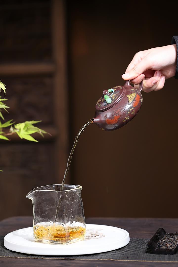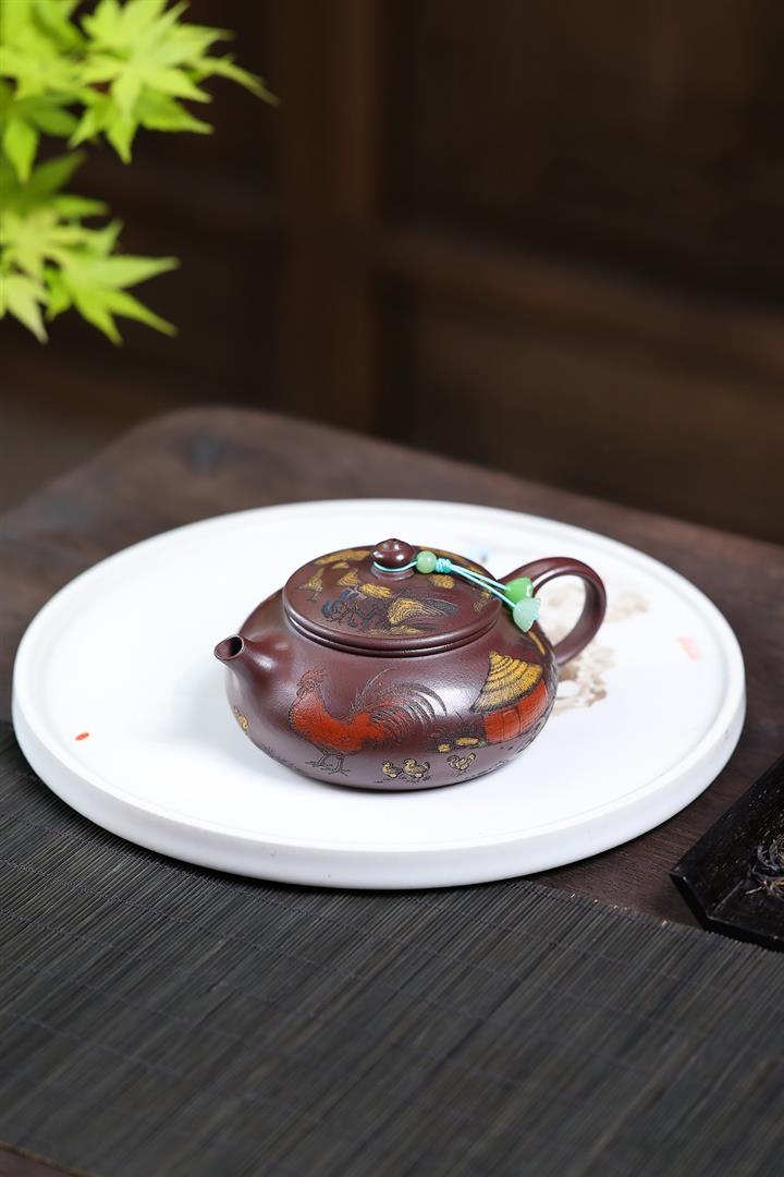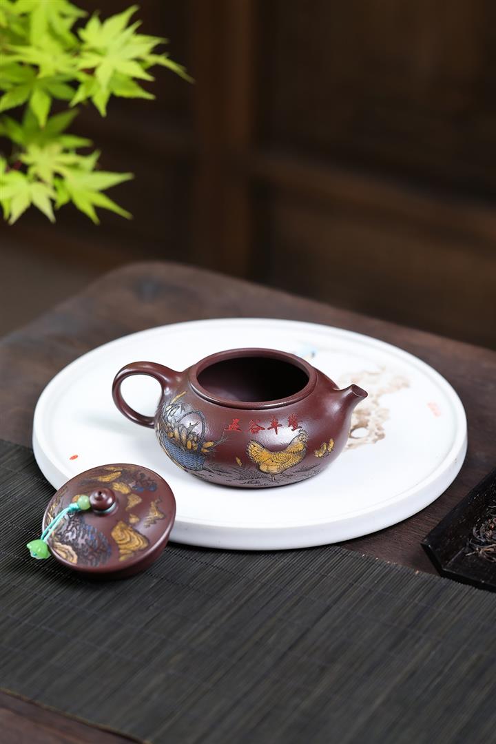 【泥料特點】砂土氣重,似淳實農民,日久使用,漸露鋒芒,養成變化,溫潤莊重。紫砂是壹種雙重氣孔結構的多孔性材質,氣孔微細,密度高。用紫砂壺沏茶,不失原味,且香不渙散,得茶之真香真味。紫砂使用越久,壺身色澤越發光亮照人,氣韻溫雅。紫砂壺長久使用器身會因撫摸擦拭,變得越發溫潤光澤。