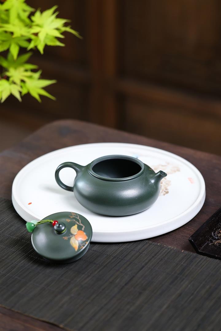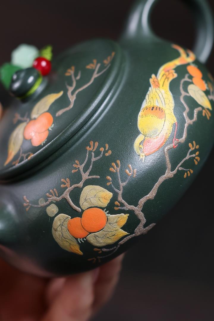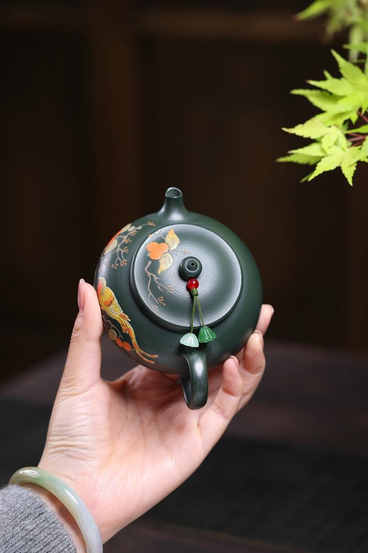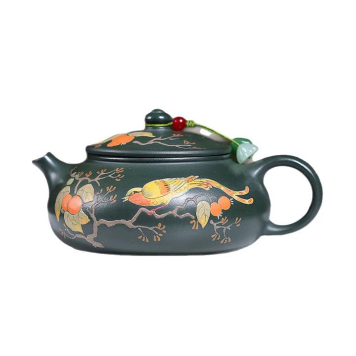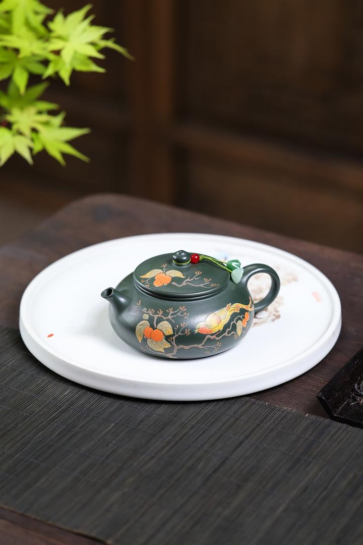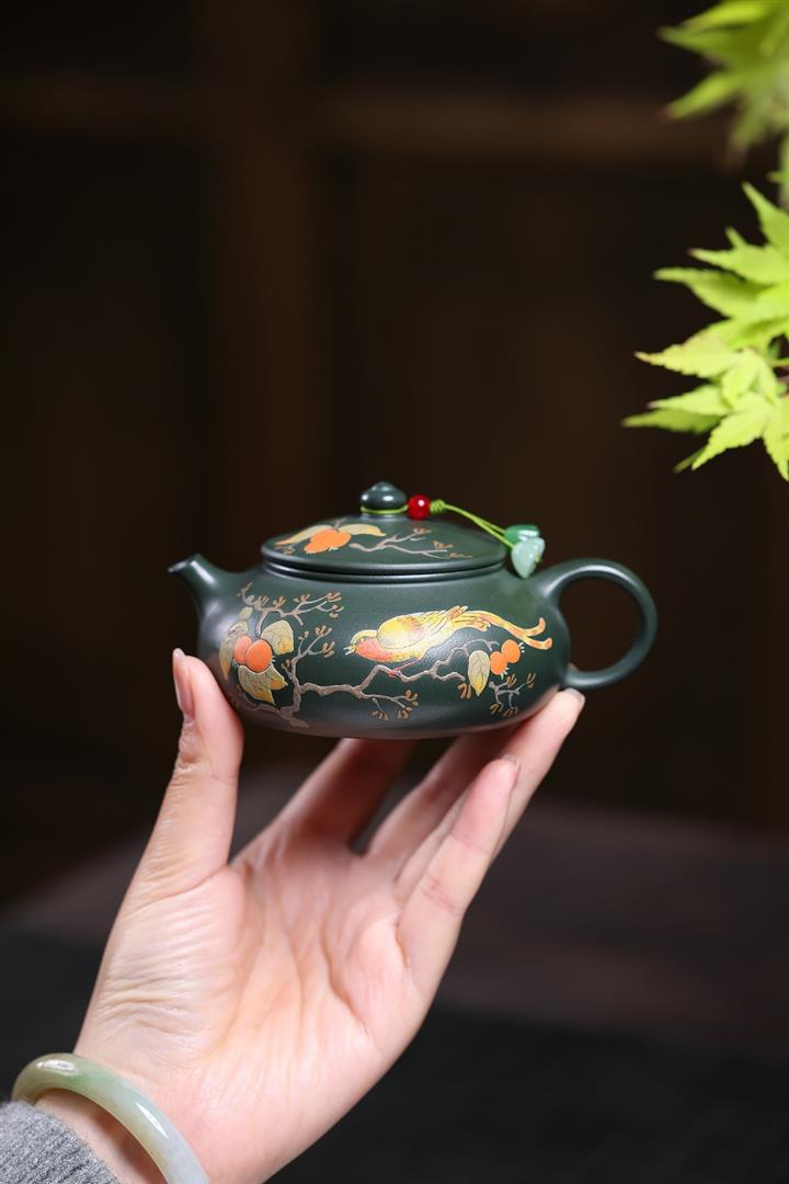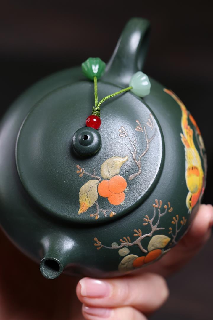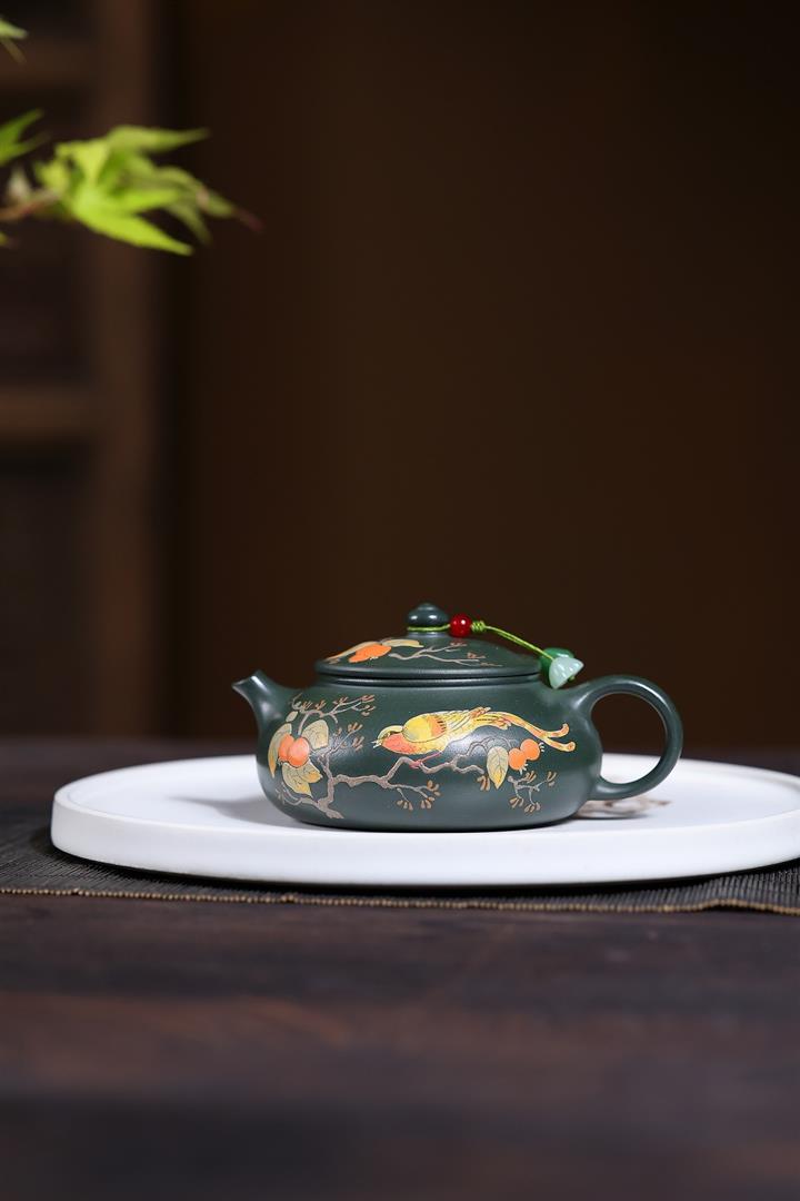 180cc原礦綠泥泥繪喜上眉梢寒江泡茶壺POT10222