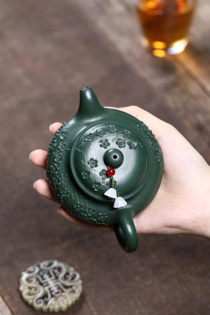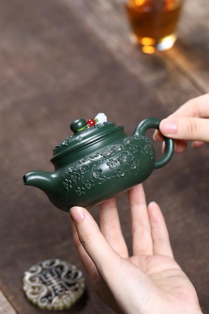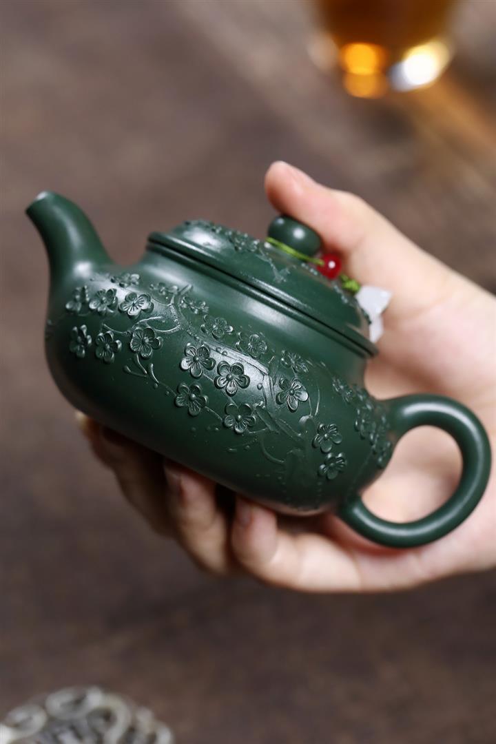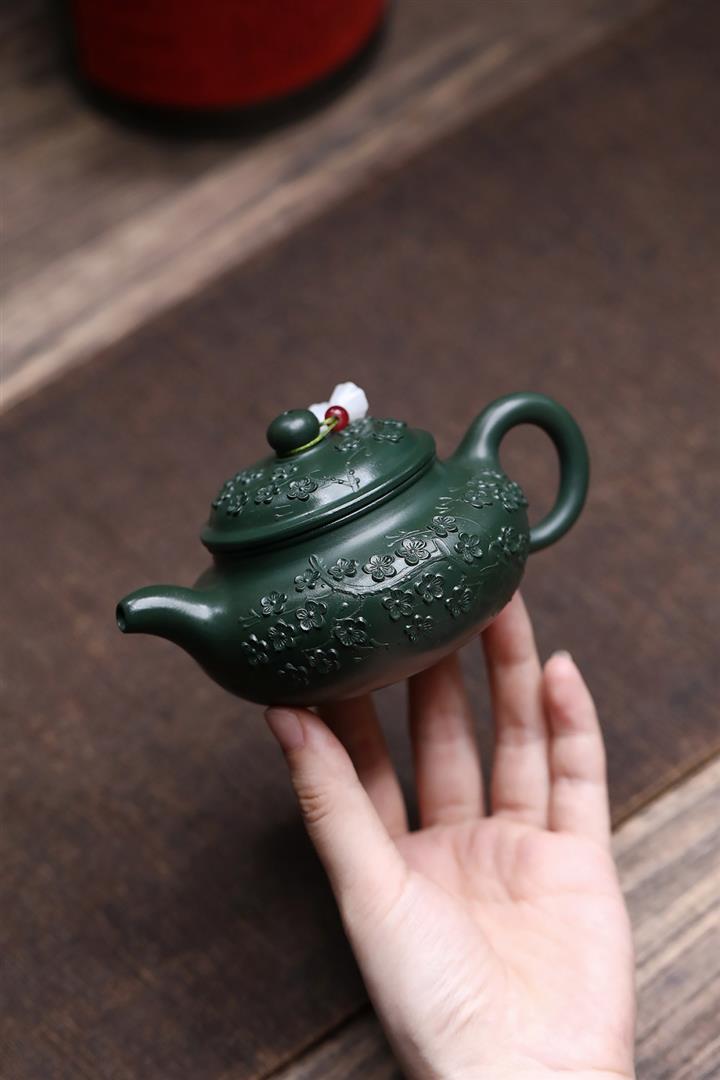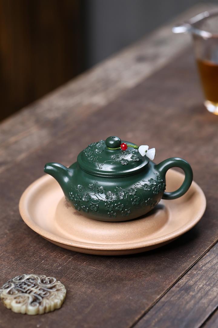 170cc原礦優質綠泥堆繪梅花仿古泡茶壺POT10223