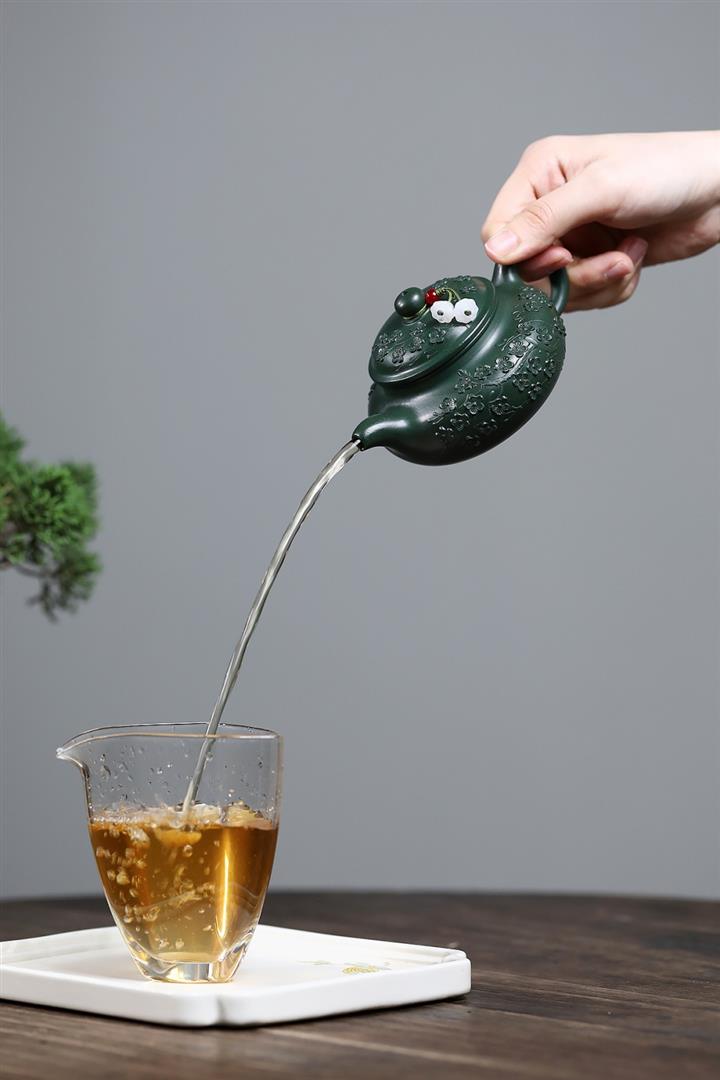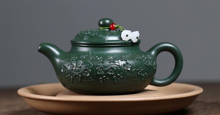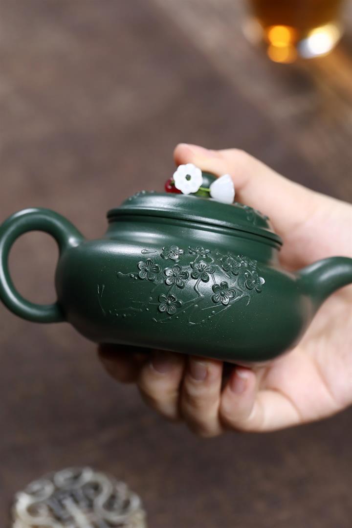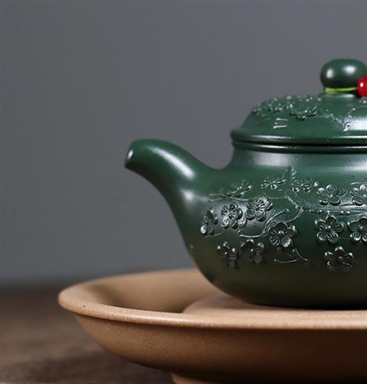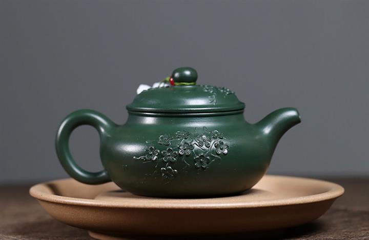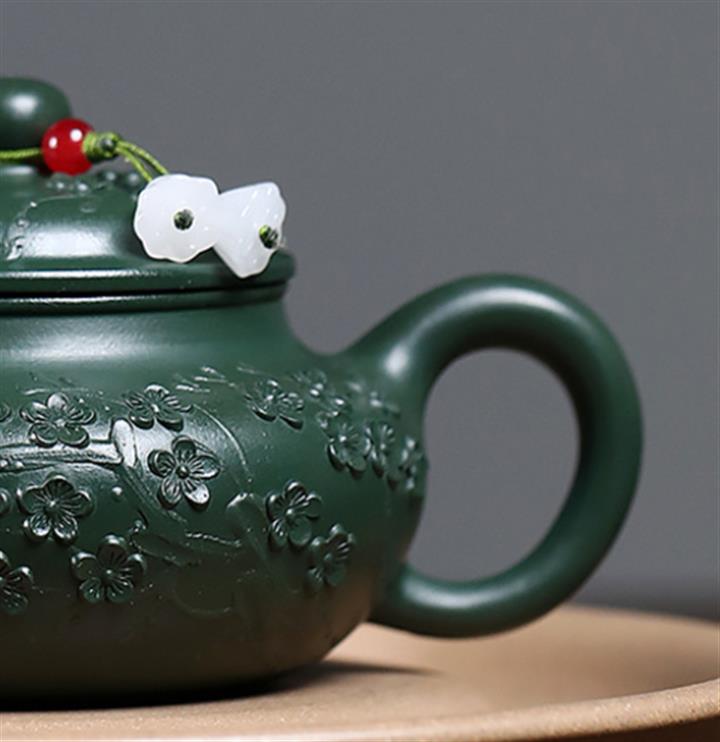 170cc原礦優質綠泥堆繪梅花仿古泡茶壺POT10223